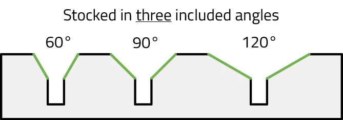 • Offered in 60°, 90°, and 120° included angles