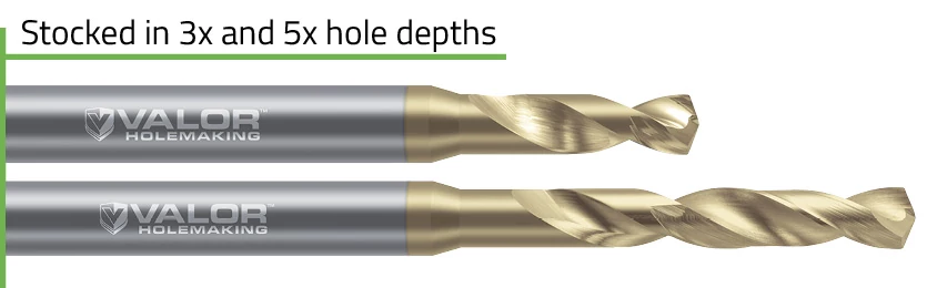 Optimized for best-in-class performance in 6061 Aluminum, this Valor Holemaking offering of High Performance Drills - Aluminum & Aluminum Alloys features geometry designed to provide minimal entry and exit burrs.