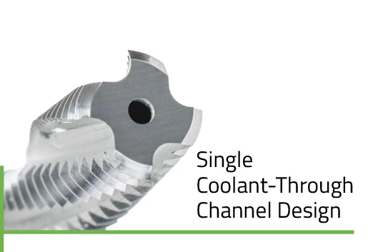 • Coolant-through design allows for maximum chip ejection in blind holes